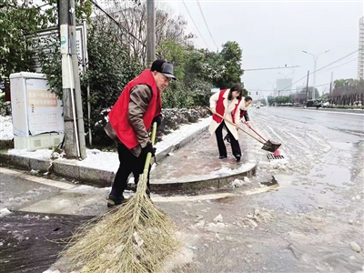 在雁峰区幸福社区,“衡阳好人”周正国和社区党员干部、志愿者一起开展积雪清扫志愿活动。大家分工明确、团结协作,经过两个多小时的清扫,社区内的楼道旁、道路上的积雪被一扫而净。