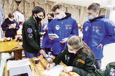 3月2日,在俄罗斯顿河畔罗斯托夫的一所大学内,志愿者整理当地居民为来自顿巴斯地区的民众捐赠的药品。 ■新华社发