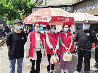 区人大代表封楚衡向洪家湾社区捐赠防疫物资,社会爱心团体启明星康复中心组织志愿者增援防疫一线,蓝天救援队队员陈亮下厨送餐给疫情防控一线的志愿者,衡州府民俗文化村、蜜雪冰城、霓裳茶舞等餐饮门店也为志愿者送来爱心饭菜、饮品。