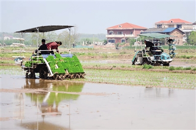今年,杨莲花响应上级号召,把流转过来的1800多亩水田全部种植双季稻。“如果没有这些农机,大户种双季稻根本搞不下来。人工插秧一是费用太高,大户承担不起;二是效率太低,季节等不起。”杨莲花说,如果她家的几台插秧机全部开足马力,不要10天,1800多亩早稻就能全部插好。