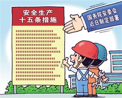 新华社北京4月10日电 近期一些地区和行业领域接连发生重特大事故,暴露出安全发展理念不牢固、责任落实不到位、隐患排查整治不力等突出问题。为认真贯彻落实习近平总书记关于安全生产重要指示精神和党中央、国务院决策部署,近日,国务院安委会梳理相关法律法规已有规定、以往管用举措和近年来针对新情况采取的有效措施,制定了进一步强化安全生产责任落实、坚决防范遏制重特大事故的十五条措施,部署发动各方面力量全力抓好安全防范工作,为党的二十大胜利召开创造良好安全环境。相关措施摘要如下: