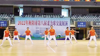 6月12日,2022年衡阳市第八届柔力球交流展演在市体育中心开幕。全市共27支队伍参加交流展演。■通讯员 何社成 摄