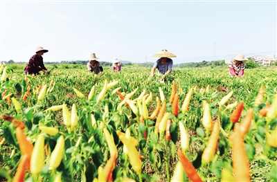 近年来,常宁市围绕“乡村振兴,产业先行”的理念,纵深推进农村产业革命,因地制宜发展“短、平、快”的特色产业,促进农业增效、农民增收。该市农业农村局相关负责人告诉记者,今年,该市线椒、湘研辣椒和牛角椒等辣椒种植面积突破6100亩,产值接近1亿元,算上加工后的收入,这个特色产业的“钱”景更美了。