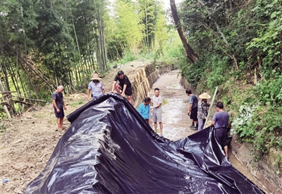 7月31日以来,关王塘水库管理所全员出动,日夜作战,在受损干渠处铺设土工膜。目前,该工程已经全部完成,这条暂时停水的干渠又恢复了通水。