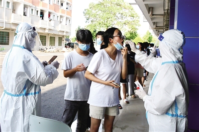 暑假即将结束,为进一步做好校园常态化疫情防控工作,确保师生身体健康和生命安全,8月29日下午,来自省外返衡的大学生们正在接受免费核酸检测。 ■全媒体记者 周围 摄