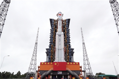 11月9日,天舟五号货运飞船与长征七号遥六运载火箭组合体转运至发射塔架。 记者从中国载人航天工程办公室获悉,11月9日,天舟五号货运飞船与长征七号遥六运载火箭组合体垂直转运至发射区。 目前,文昌航天发射场设施设备状态良好,后续将按计划开展发射前的各项功能检查、联合测试等工作,计划于近日择机实施发射。 ■新华社发