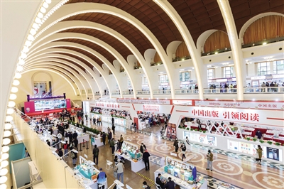 2022上海书展于11月18日至22日在上海展览中心举办。本届书展主要设置4个展示展销区域,分别为书展历程展示区、主题展示区、精品图书展览展销区、嘉年华市集区。图为当日在上海展览中心拍摄的2022上海书展精品图书展览展销区。 ■新华社发
