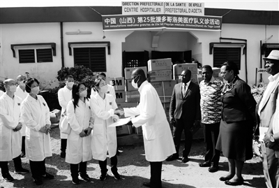 11月30日,中国第25批援多哥医疗队向多哥佩莱省阿代塔镇卫生所捐赠医疗物资。 中国第25批援多哥医疗队11月30日在该国佩莱省阿代塔镇卫生所进行义诊活动,为当地民众提供诊疗服务。 ■新华社发