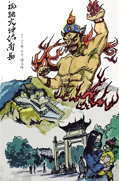 “八卦象离,中正乃成天下化;五行属火,文明大启楚邦材”,这是南岳大庙东便门的一副对联,这些都充满了对火神祝融的崇敬。