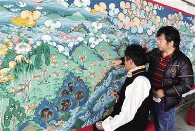 冬日的早晨,西藏自治区日喀则市非物质文化遗产展示中心的画室内,43岁的西落正仔细端详着眼前的画作——画布上,远处白雪覆盖的珠穆朗玛峰与近处的绿水青山相辉映,花果丰饶的山水间,藏羚羊、梅花鹿等嬉戏奔跑,一派生机盎然的高原景象……