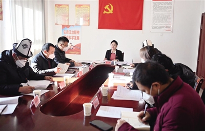 夜访前的当天下午,李文娟和乡里同事们召开专题讨论会,学习党的二十大精神,谋划全面推进乡村振兴。
