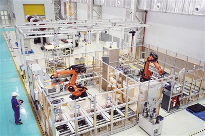 厂房内,三四层楼高的智能化立体货架引人瞩目,只见电脑前工人轻点鼠标下达指令,自动托料框来回穿梭,将物料送到旁边的全自动超声波清洗干燥机。“这就是自动化立体仓库,货架和材料上都有编码。”工人们对此颇为自豪。