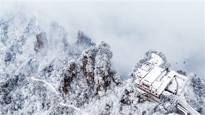 1月16日拍摄的张家界天子山雪景。当日,位于湖南张家界的天子山被冰雪覆盖,峰林银装素裹,美如画卷。■新华社发