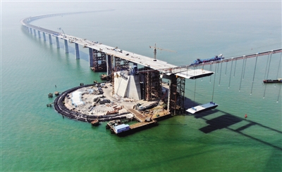 这是2月22日拍摄的正在吊装钢箱梁的深中通道伶仃洋大桥边跨(无人机照片)。 目前,深中通道伶仃洋大桥正有序推进钢箱梁吊装施工。伶仃洋大桥是深中通道的重要组成部分,主跨1666米,是世界上最大跨径的海上钢箱梁悬索桥。 ■新华社发