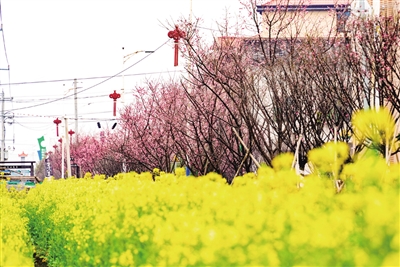 上午10时左右,已有不少游客驱车前来观花赏景,或站在路两旁的梅花树下,或走进大片的油菜花田里,和亲友们一起拍照打卡,脸上洋溢着笑容。如今的梅花村有近千亩花田,村道组道全部种上了梅花树,共有红梅、情人梅、腊梅等四十个品种,盛开的梅花形成一片花海,漫步其中,清风拂过,花枝随风摇曳,花瓣似飞舞的精灵。旁边金黄夺目的油菜花迎风绽放,层层叠叠的花田黄绿相映,连成一片,让人心旷神怡。