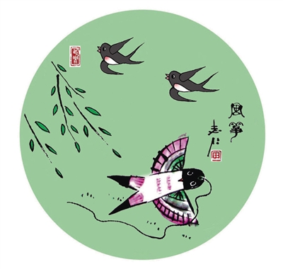 风筝写意:没有他人的牵引和扶持,就失去了生命力。 ■田志仁