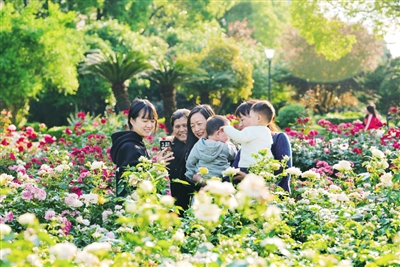 4月25日,南华大学东门入口处的月季和美女樱进入盛开期,在蓝天白云的映衬下,如同童话世界一般美丽奇幻。 ■全媒体记者 张志伟 摄