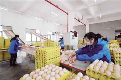 4月27日,衡阳县台源镇安发原生态农业科技示范园蛋鸡养殖基地,当地村民正在鸡蛋分拣包装流水线上作业,基地日产蛋约120万枚,2022年销售收入1.5亿元。据了解,该公司为湖南省农业产业化龙头企业,项目总投资8.8亿元,一期主要建设原生态种养加基地,二期主要建设农业技术培训基地、科普研学、文旅、民居民宿和康养基地。■衡阳日报全媒体记者 罗茂盟 摄 |