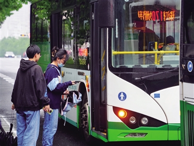 4月28日上午,时雨濛濛。尽管天气不佳,但干净整洁的街道、有序上下公交的队伍、礼让行人的车辆……绘就了这座城市的文明底色。■实习生 周继晋 摄