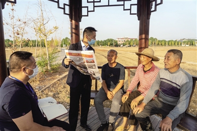 一沓报纸,几条板凳,在耒阳市长坪乡潭湖村集中安置点简约的读报现场,老人们围坐聆听,时不时还互相沟通、交流。针对山村里很多老年人子女不在身边,也没有用智能手机,加之年纪大,视力下降,读书看报很费力,精神文化生活也比较匮乏的情况,耒阳市纪委监委组织纪检监察干部为山村老人开展送报读报活动,每天提供《人民日报》《湖南日报》《衡阳日报》等重要党报党刊供村民阅读,再加上纪检监察干部为大家生动地讲解,从而富有成效地宣传了民生政策,传播了党的声音。