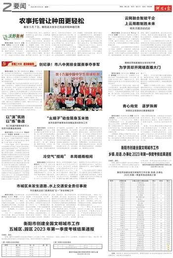 衡阳市创建全国文明城市工作 五城区、园区2023年第一季度考核结果通报