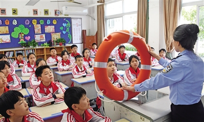 5月10日,民警在浙江省台州市仙居县第五小学向学生讲解防溺水和心肺复苏急救等知识。在全国防灾减灾日来临之际,各地校园开展防灾减灾知识普及和应急疏散演练等活动,提高学生应对自然灾害突发事件的能力。■新华社发
