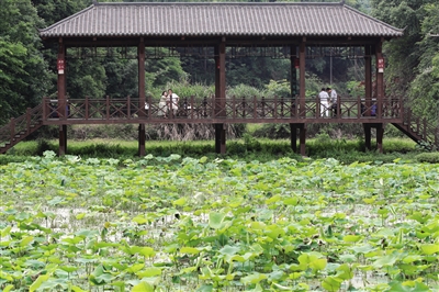 5月18日,荷叶如翠盖,蒸湘区雨母山十里荷塘景色惹人醉。池塘、雕像、凉亭、栈道相映成趣,仿佛置身于诗画之中,吸引不少市民和摄影爱好者观赏、拍摄。 ■衡阳日报全媒体记者 罗茂盟 摄