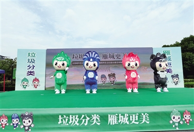 5月26日,在“垃圾分类 雁城更美”城市生活垃圾分类宣传周暨衡阳市生活垃圾分类吉祥物发布会上,衡阳市生活垃圾分类吉祥物绿娃、火娃、水娃、山娃首次亮相。 ■全媒体记者 金明达 摄