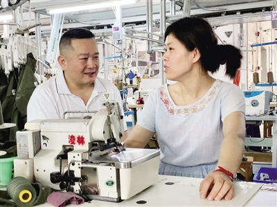“这个工作简单,一个月至少能挣5000多元,还包吃包住,在这里上班很安心。”正在制衣的残疾工友伍某开心地说道。像伍某这样的残疾工友在公司还有4人,在家门口就能实现就业增收。除此之外,公司还专门成立了工会帮扶基金,用来帮助五保、脱贫家庭,以及员工生病和残疾工友的看望慰问。近些年,公司积极参与各类社会公益活动,关爱留守儿童、孤寡老人和捐资助学,累计献出爱心基金30余万元,捐赠服饰价值近20万元,帮助困难群众数百人。