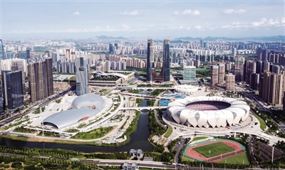 2021年8月2日拍摄的杭州奥体中心场馆群(无人机照片)。■新华社发