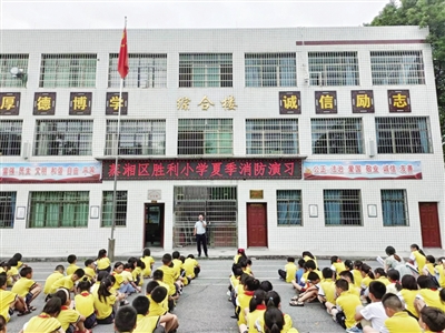 衡阳日报讯(文/图 通讯员 尹佳)为进一步增强全校师生消防安全意识,全面普及消防安全知识,6月12日,蒸湘区胜利小学举行了一场消防应急疏散演练。