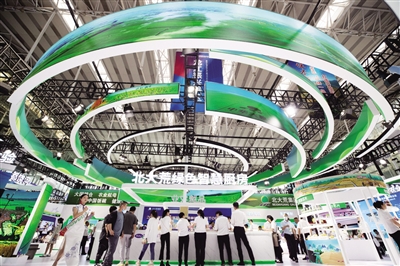 6月15日,参会者在北大荒集团展区参观。