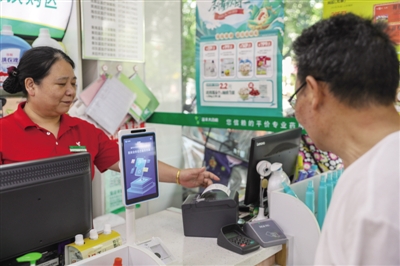 为进一步方便参保群众进行医保结算,近期衡阳县医保局以医保电子凭证为媒介,在全县多家医疗机构、药店开通医保结算“刷脸”支付,参保人无需带卡带手机,“刷脸”即可实现医保报销、购药等医保服务。图为6月28日,在衡阳县一药店,市民使用医保“刷脸”结算进行购药。■刘欣荣 摄 |