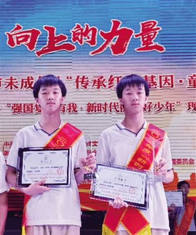 6月28日,在“新时代衡阳好少年”的颁奖典礼上,一对双胞胎披着红色绶带,手捧获奖证书,脸上洋溢着灿烂的笑容。
