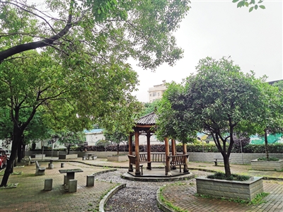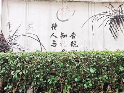盛夏之时,如意里生机盎然。穿过郁郁葱葱覆盖了大半条巷子的两排樟树,记者随着雷仪群来到巷内的小花园里,只见退休的老人们三三两两的聚在凉亭里,或娱乐休闲,或健身聊天,一片和谐;凉亭后的围墙画满了五彩斑斓的墙绘,一草一木,一花一景,入眼处让人满心欢喜。