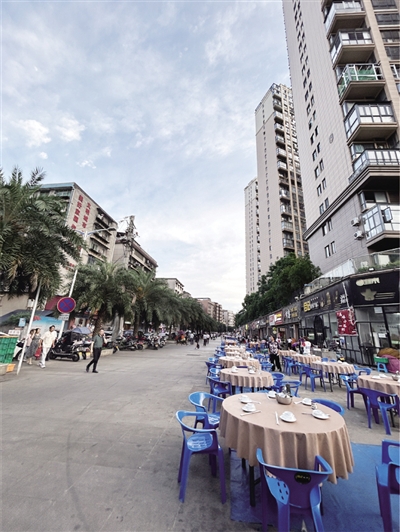 现在,在这条仅三百多米长的路上,冰凉的冷饮、清爽的水果、热辣的烧烤、肥美的龙虾……丰富多样的食物让挑剔的老餮也可一饱口福;叫卖的摊贩、散步的居民、翩翩起舞的广场舞王者、在药店门口看电视的老人……夏夜的惬意随着音符传入每一个人的眼中、耳中、心中,让偶尔路过的游客也流连忘返。