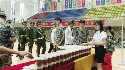 现场,绿色田园(衡阳)农业发展有限公司工作人员为军训新生分发枇杷茶饮,鼓励大家以饱满的精神状态和顽强意志完成军训各项课程。参训学生备受鼓舞,纷纷表示要发扬不怕困难、不怕吃苦的精神,勤奋训练,圆满完成军训,充分展现当代学子积极向上的精神风貌。该公司负责人告诉记者,自8月份开展公益送清凉活动以来,先后为该县的消防员、环卫工人、快递小哥、企业员工等高温下的劳动者送上了5000多杯枇杷茶饮,感谢他们的辛勤付出和高温下的默默坚守。