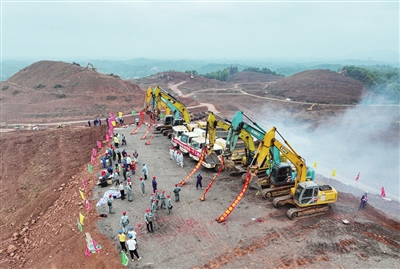 衡阳日报讯(文/图 全媒体记者 彭斌)9月6日,衡南县泉湖镇红湖村与小江村交界处的群山之间,百余台套各种重型机械、车辆来回穿梭,施工人员各司其职,井然有序,工地一派繁忙景象。当天,宁夏-湖南±800千伏特高压直流输电衡阳换流站“四通一平”工程拉开序幕。