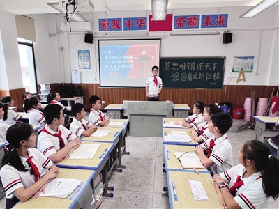 华耀小学党支部书记、校长杨翠湘介绍,学校根据学生不同年龄特点设计了不同的“开学第一课”,对于低年级的学生,通过开展“快问快答”活动,实现以问促学、以学促行;对于高年级的学生,通过思辩赛的形式,引领学生进行思辩表达,传递正能量,让每一个学生努力争做担当民族复兴大任的时代新人。