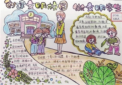 活动中,同学们精心制作,充分发挥自己丰富的想象力和创造力,从排版设计、版面美化到整体效果,都经过了认真思考和精心安排。每一份作品都紧扣“文明”主题,设计美观,图文并茂,作品内容丰富多彩:有文明礼仪基本常识,有文明礼仪小故事,有关于文明礼仪的名言警句……此次活动共收到各班推荐的优秀手抄报共200多张,在专业评委颜军等老师的审核下,共评选出一、二、三等奖30名。