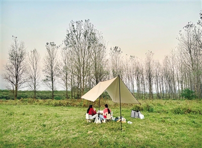 露营发烧友刘雯就是其中一位。一方天幕下,刘雯和一众好友围坐一起,折叠桌上精致的茶壶里正咕嘟咕嘟地煮着白茶,周围摆着各式水果和零食,旁边还架着一个小烧烤炉。“闲暇时光,无需远行,约上亲友带上装备一起于室外寻觅清新自在的烟火气,一起聊天、游戏、烧烤……既轻松又有乐趣!”她的一席话说出了很多年轻人的心声。