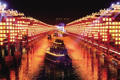 10月30日,游客在唐山市丰南区河头老街景区赏景游玩。近年来,河北省唐山市丰南区通过实施多项便民措施,鼓励夜间餐饮、旅游、文化等消费活动,持续释放“夜经济”活力。 ■新华社发