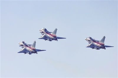 空军八一飞行表演队组建60多年来,先后装备歼-5、歼-6、歼教-5、歼-7EB、歼-7GB、歼-10、歼-10C表演机,为170多个国家和地区的700多个代表团进行700余次飞行表演,8次飞出国门执行飞行表演任务,在国际舞台上展示中国空军锐意进取、追求卓越的形象风采。