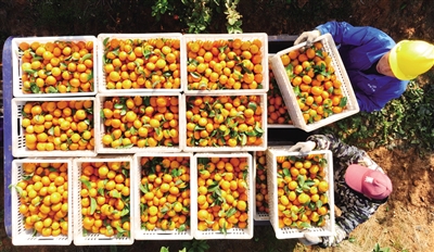 11月28日,在位于衡南县花桥镇的源氏农林柑橘种植基地,当地村民在采摘砂糖橘。近年来,衡南县积极调整农业产业结构,根据市场的需求,大力发展各类特色优质水果,帮助当地群众增加收入。当前,该基地种植的砂糖橘、脐橙、葡萄柚陆续进入成熟采摘期,当地村民抢抓晴好天气开展采摘,满足市场的需求。 ■通讯员 曹正平 摄 |