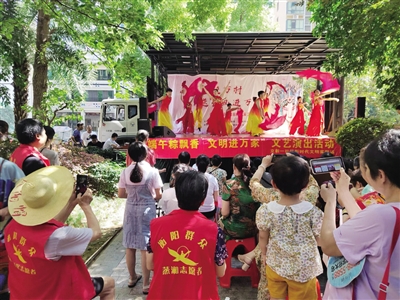 “公共文化进村入户,送戏曲进乡村”“以诗词为‘媒’,助力乡村振兴”“广场旬旬演,社区周周乐”等文化惠民活动层出不穷,雨母山镇村民李大爷表示,村里还有自发组建腰鼓队、龙灯队的村民,他们经常看见文艺团体在村里表演。