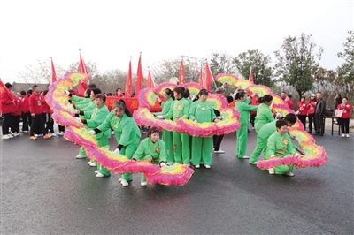 当天,该村腰鼓队、健身舞蹈队也前来为参加活动的村民表演助兴。