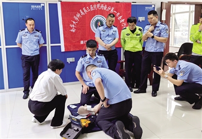 衡阳晚报讯(通讯员 王悠) 为积极推动警医合作机制,普及紧急救护知识,加强和规范应急救援事故现场处理,提高事故现场急救能力,4月20日,南华大学附属第三医院现场救护第一目击者导师团队来到湖南省高速公路交通警察局新塘大队,为警员们进行急救知识科普及操作培训。
