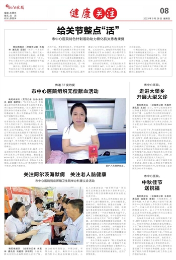 活动现场,医务人员热情地为100余名老年人进行健康咨询、认知功能筛查、疾病诊疗、用药咨询、测量血压血糖,并详细讲解健康科普相关知识。同时,根据每位患者的身体状况进行健康指导,为社区群众搭建了一个良好的医患沟通平台,提供了方便的就医机会。市中心医院神经内科中心医务人员以“依然记得爱”为主题,进行阿尔茨海默病健康知识宣讲,用通俗易懂的语言从阿尔茨海默病的发病原因、临床表现、如何预防、如何就医等方面展科普讲座。活动现场气氛活跃,听众们纷纷就自己在日常生活中出现的健康问题进行提问,医务人员热情地为大家一一答疑解惑,获得一致好评。