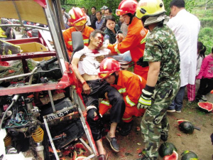 本报讯 5月17日13时25分,省道S214线常宁柏坊段发生一起大货车与三轮摩托车相撞的交通事故,三轮车司机被死死卡在驾驶位置,头部、脚部多处位置受伤,后经常宁消防官兵救援,成功得以获救。