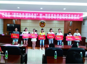 本报讯7 月 21 日上午,石鼓区慈善办在区政协常委会议室举行“朝阳助学 播种希望”第一期慈善助学金发放仪式,为全区47名家庭贫困、品学兼优的中、小学生提供资助。此次助学项目是在区慈善办“点亮人生 追逐梦想”专项资助大学贫困新生慈善助学项目后,又新推出对中小学贫困学子们的助学项目。目的在于努力做到“不让一个孩子因贫困而失学”,让他们切实感受到党和政府的温暖,感受到社会各界的关爱。此次活动共发放3.36万元助学金。